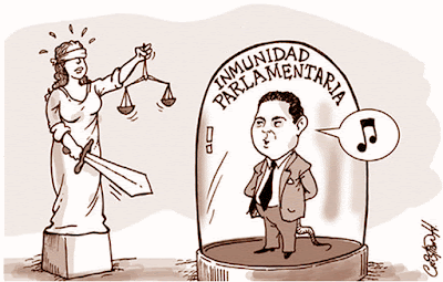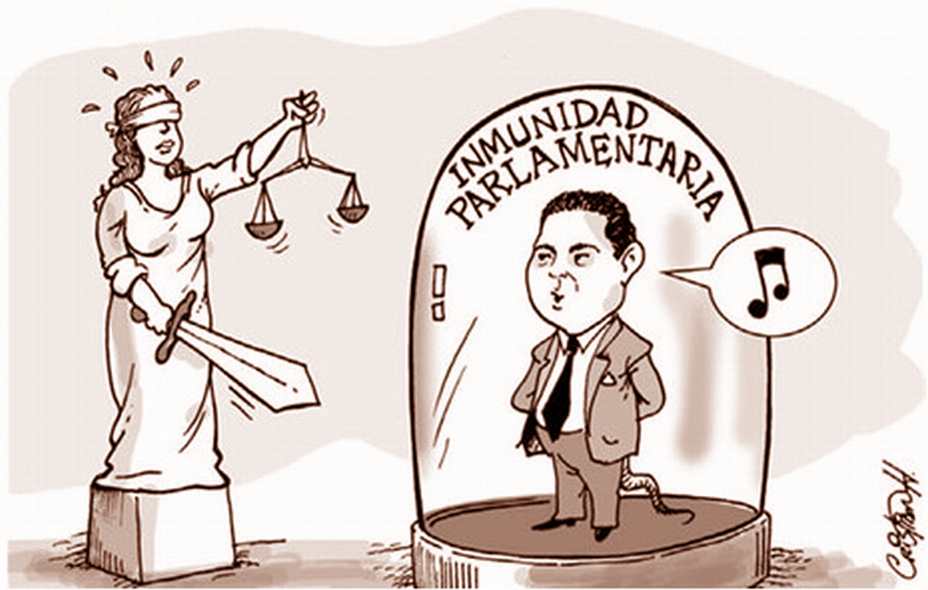 Pero sobre todas esas prebendas existen las que recoge el artículo 71 de la Constitución, en sus puntos: 1. Los Diputados y Senadores gozarán de inviolabilidad por las opiniones manifestadas en el ejercicio de sus funciones. 2. Durante el período de su mandato los Diputados y Senadores gozarán asimismo de inmunidad y sólo podrán ser detenidos en caso de flagrante delito. No podrán ser inculpados ni procesados sin la previa autorización de la Cámara respectiva.
