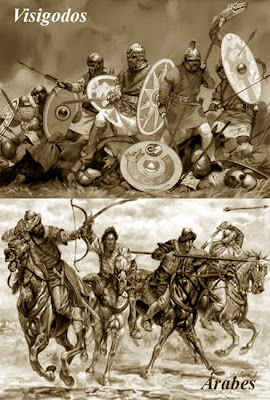 Con estos antecedentes llegamos a la primavera del año 711 en que se produce la invasión de la península por los árabes. El reino visigodo, en aquellos momentos, se encontraba dividido en dos facciones, los seguidores de Rodrigo que había sido proclamado rey por una parte de la aristocracia que conformaba la élite seglar y eclesiástica del reino a la muerte de Witiza, y quienes se oponían a ese nombramiento apoyándose en la legitimidad que les correspondía a los hijos del fallecido monarca. Descendencia puesta en duda por muchas de las fuentes históricas. Estos enfrentamientos entre ambas facciones llevaron a conflictos internos que coincidieron en el tiempo con los primero ataques de los árabes a territorios de la península ibérica.