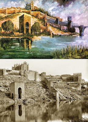 En la parte superior en una obra del pintor toledano Sánchez-Colorado.